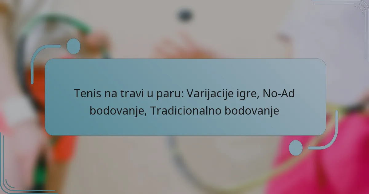 Tenis na travi u parovima nudi razne formate igre koji poboljšavaju i natjecateljsku atmosferu i užitak, uključujući redovne parove, mješovite parove i Fast4 tenis. Među sustavima bodovanja, no-ad bodovanje pojednostavljuje igru eliminirajući prednost, omogućujući brže mečeve. Tradicionalno bodovanje, s druge strane, slijedi strukturiranu sekvencu koja utječe na strategije igrača i dinamiku meča.