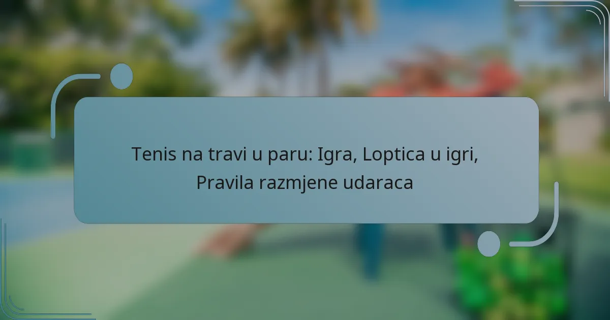 Parni tenis na travi uključuje jedinstvena pravila koja reguliraju igru, uključujući bodovanje, redoslijed servisa i strategije prilagođene timskom radu. Lopta ostaje u igri osim ako ne dotakne tlo izvan granica terena ili ako nije proglašena van, što zahtijeva od igrača da budu oprezni u vezi s servisima i pozivima za van. Osim toga, pravila razmjene određuju interakcije između timova tijekom izmjena, osiguravajući poštenu i zanimljivu igru.