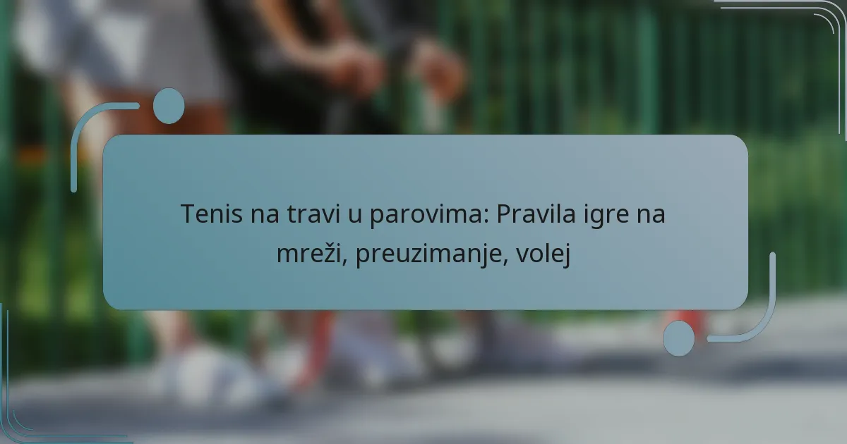 Igra na mreži u tenisu na travi u parovima uključuje specifična pravila koja se odnose na pozicioniranje igrača, ometanje i posljedice kršenja pravila. Razumijevanje ovih propisa ključno je za učinkovito timsko djelovanje i održavanje fer igre tijekom mečeva.