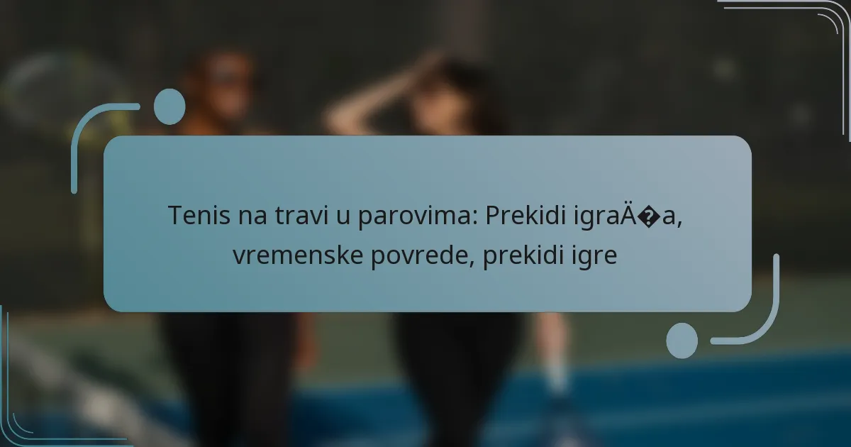 Prekidi igre u parnom tenisu na travi upravljaju se kroz uspostavljene protokole koji osiguravaju pravednost i dosljednost. Ovi prekidi mogu nastati iz raznih čimbenika, a igrači se moraju pridržavati specifičnih smjernica kada se igra nastavi.
