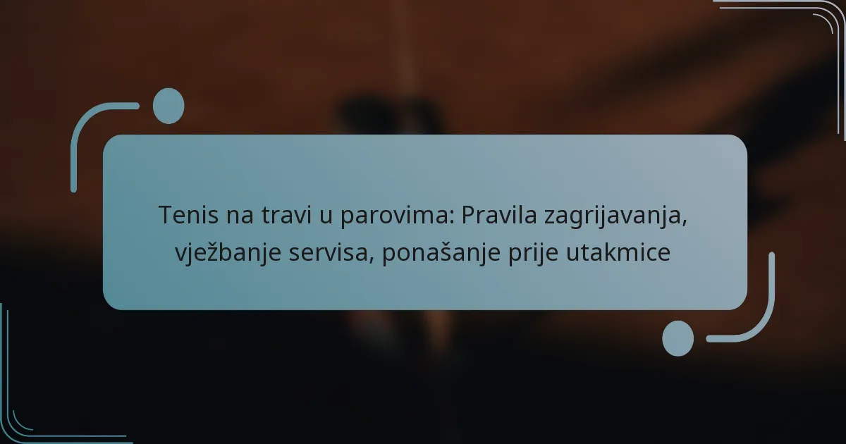 U tenisu na travi u parovima, pravila zagrijavanja osiguravaju da su igrači spremni i promiču fer igru prije mečeva. Vježbanje servisa ključno je za dosljednost i komunikaciju između partnera, jer jak servis može značajno utjecati na ishod igre. Osim toga, održavanje respektabilnih interakcija i sportskog duha tijekom ponašanja prije meča potiče pozitivno i natjecateljsko okruženje za sve uključene igrače.