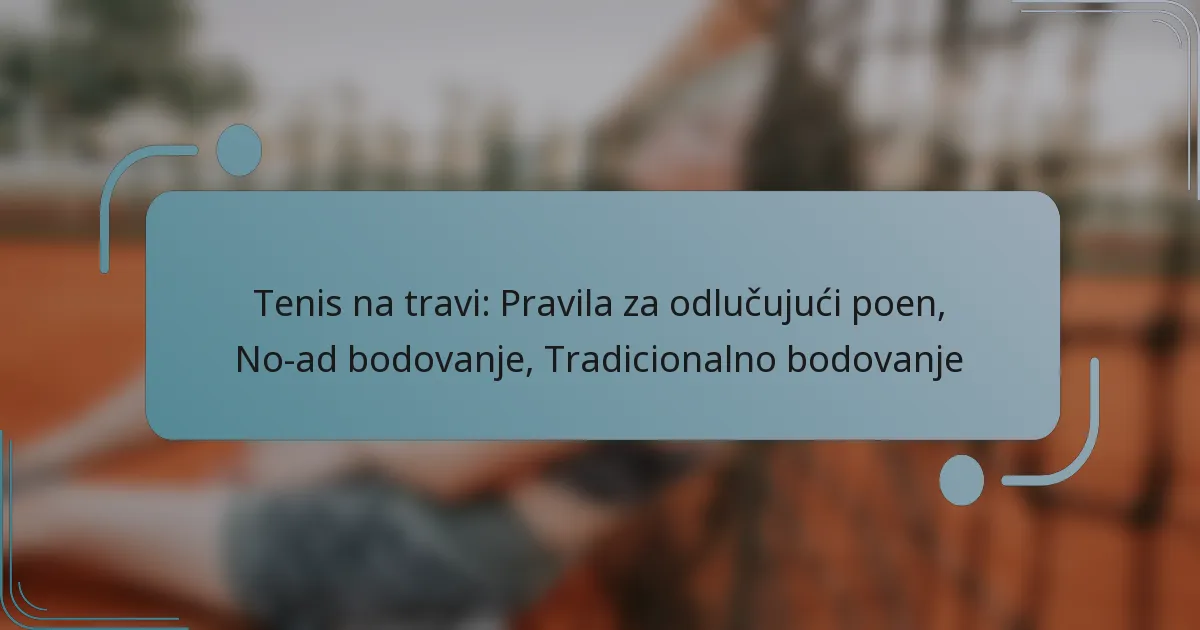 Rezultati u tenisu na travi uključuju različite metode za određivanje ishoda mečeva i setova, svaka sa svojim pravilima. Tiebreakeri se koriste kada rezultat dosegne 6-6 u setu, dok no-ad bodovanje pojednostavljuje igru eliminirajući pravilo prednosti nakon izjednačenja. Tradicionalno bodovanje koristi jedinstveni sustav bodova koji uključuje pojmove poput “nula”, “izjednačenje” i “prednost”, što može biti izazovno za početnike.