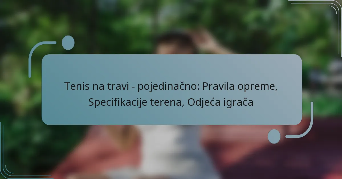 Jednostavni tenis na travi uključuje specifična pravila o opremi koja reguliraju standarde za rekete, lopte i materijale, promičući fer igru tijekom natjecanja. Dizajn terena, prilagođen za mečeve jedan na jedan, uključuje definirane dimenzije i vrste površina koje su bitne za pravilnu igru. Osim toga, igrači se moraju pridržavati pravila o odjeći koja prioritet daje udobnosti i izvedbi, poboljšavajući njihovu pokretljivost i učinkovitost tijekom mečeva.