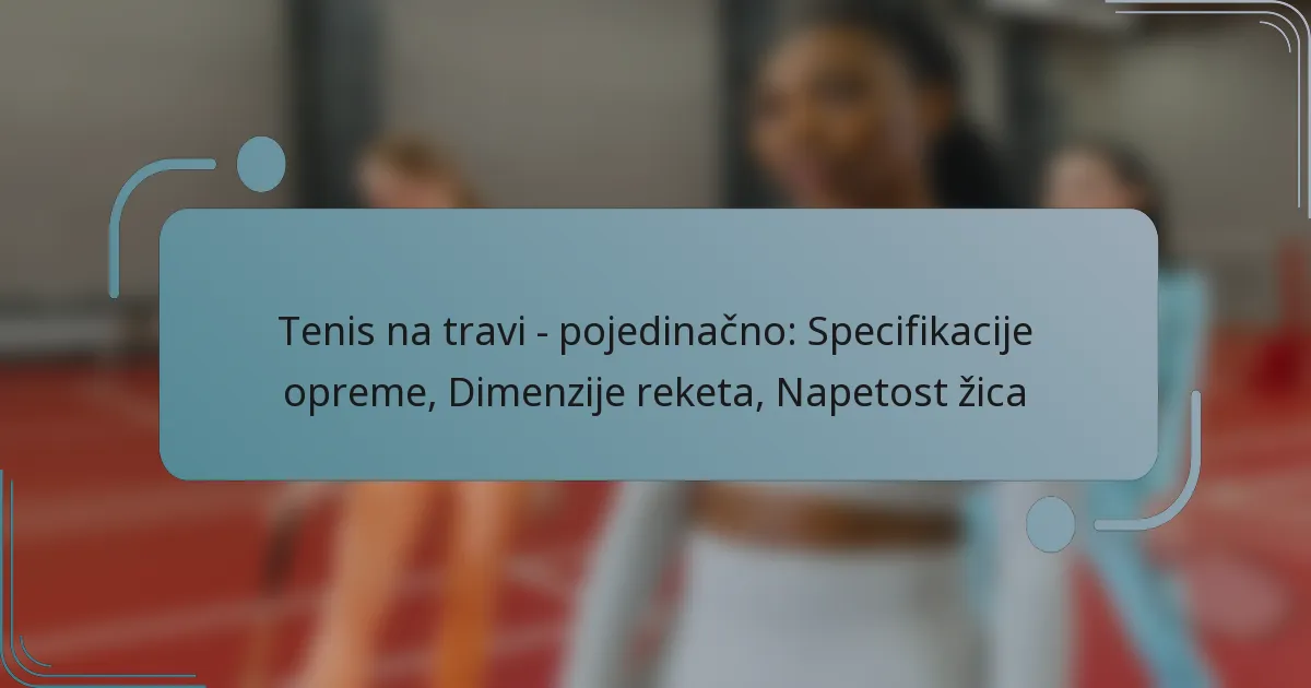 Osnovne specifikacije opreme za pojedinačni tenis na travi uključuju težinu reketa, točku ravnoteže, veličinu glave, sastav materijala i veličinu drške. Svaki od ovih čimbenika utječe na izvedbu igrača, udobnost i kontrolu na terenu.