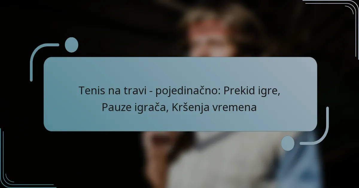 Prekidi igre definiraju se kao bilo koji događaj koji zaustavlja igru tijekom teniskog meča. To može uključivati planirane pauze, medicinske timeout-e ili neočekivana kašnjenja zbog vanjskih čimbenika. Razumijevanje ovih prekida ključno je za igrače i gledatelje, jer mogu značajno utjecati na ishod meča.