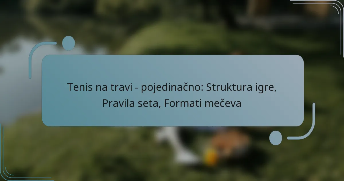 Jedinačne utakmice u tenisu na travi strukturirane su oko niza igara organiziranih u setove, s igračima koji se natječu za osvajanje potrebnog broja setova za pobjedu. Svaki set zahtijeva da igrač osvoji šest igara, održavajući prednost od dva gema kako bi osigurao set. Formati utakmica mogu varirati, uključujući tradicionalne najbolje od tri ili najbolje od pet setova, kao i inovativne formate s vremenskim ograničenjima poput Fast4, koji utječu na trajanje i strategiju igre.